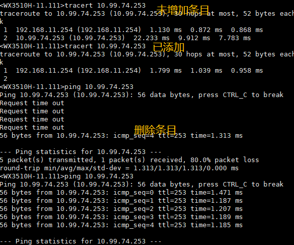 测试设备IP为:192.168.11.111;增加以上任意一条规则后均会出现目标地址无法访问