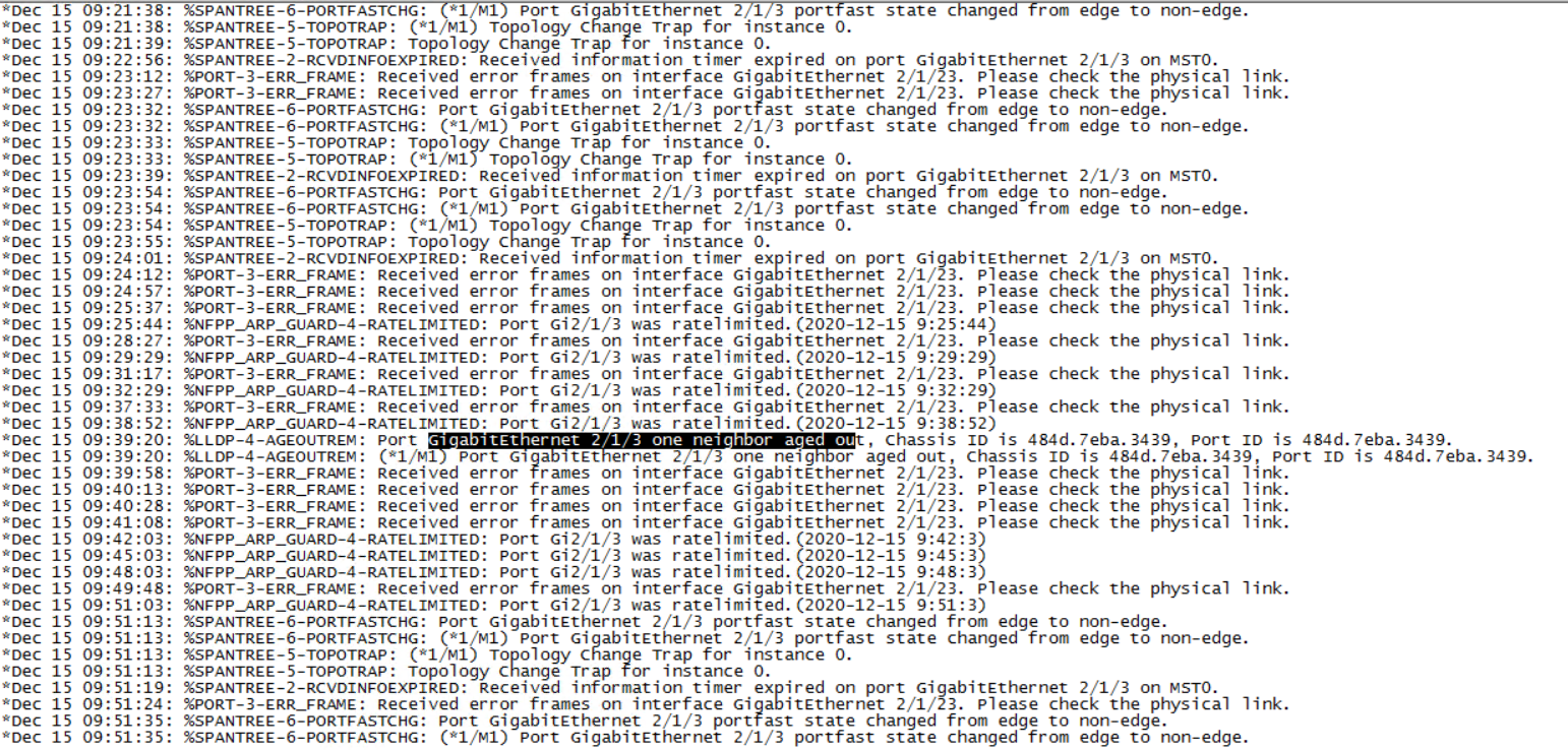 求高手帮我判断下面GigabitEthernet 2/1/3、 GigabitEthernet 2/1/23两个端口频繁出现这些告警是否因为产生了环路。