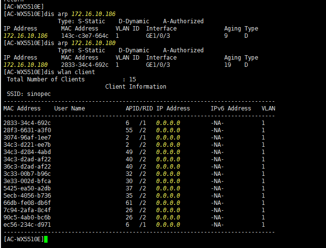 开启arp-snooping的功能,ac就会学习到终端的ip地址。