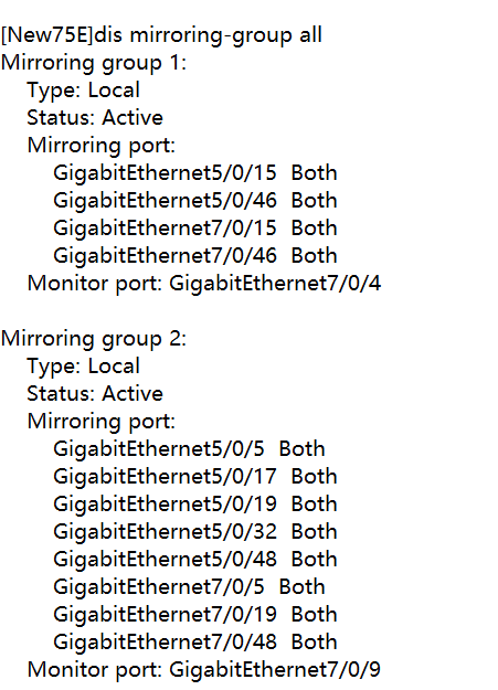 大部分单板只有四个镜像资源,一个镜像组中的源端口一个方向占用一个资源,both两个方向占用两个资源,那么两个镜像组就会将资源占满。