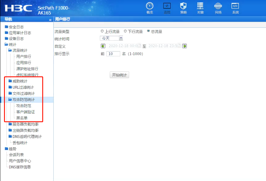 F1000-AK165 防火墙的安全威胁统计如何开启?