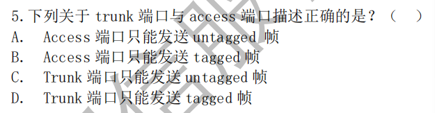 只能选A了,因为access端口出去的报文要去掉vlan号;