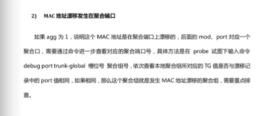 MAC地址飘移出现在聚合口,使用debug port trunk-global chassis 怎么查看呢,怎么找到对应关系呢?