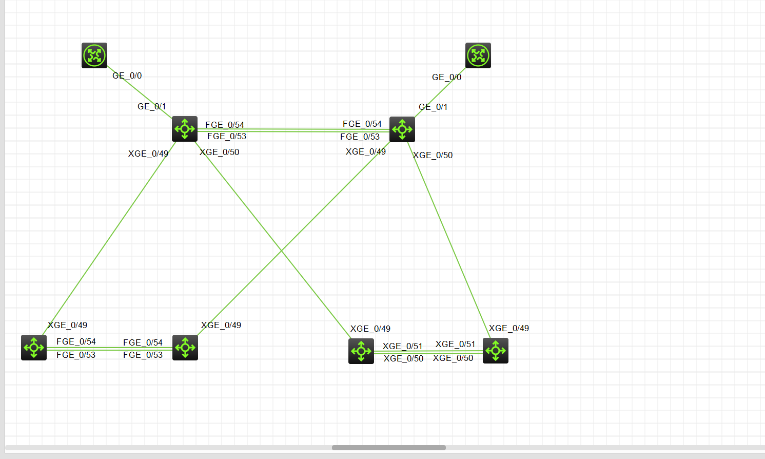 六个交换机是两两一堆叠,中间做的聚合,三组交换机的地址在vlan1上分别是18.16.8.1/24 18.16.8.2/24 18.16.8.3/24然后上面交换机与路由器相连的端口配的是三层的接口(port link-mode route)配的地址是18.16.9.1/24 18.16.9.2/24路由器与交换机相连的接口配的是18.16.9.3/24 18.16.9.4/24