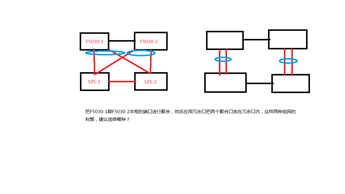把F5030-1跟F5030-2本框的端口进行聚合,然后在用冗余口把两个聚合口放在冗余口内,这样两种组网的利弊,建议选择哪种?
