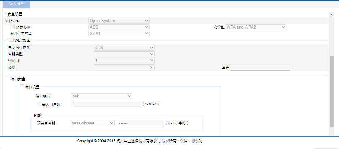 #选择“无线服务”>“接入服务”单击无线服务“psk”对应的