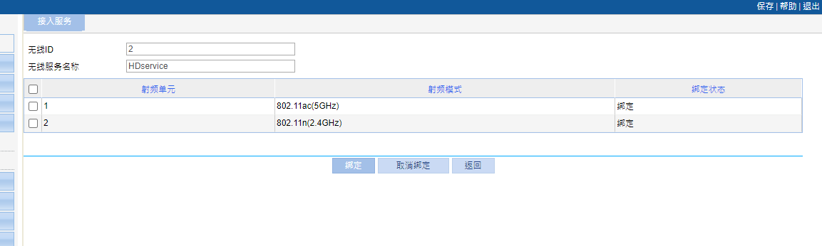 #根据用户需求选择射频口前的复选框并点击“绑定”