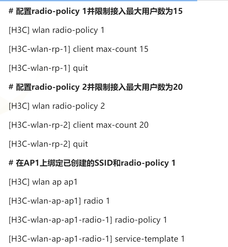 射频口下直接设置最大接入数即可。# radio 1 client max-count 1#