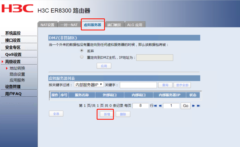 路由web配置nat页面如下: