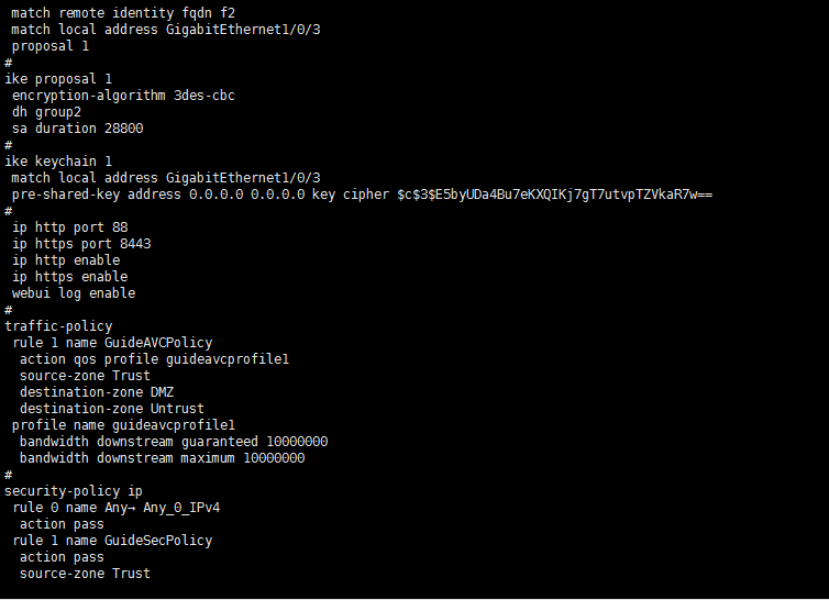 3、由于是跟防火墙进行的对接,防火墙上涉及到的物理端口等需加入安全域并放通安全策略或域间策略,尤其是LOCAL域分别作为源和目的进行放通。