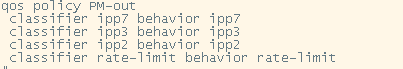 以及在qos policy PM-out里面rate-limit在最后调用是否会被前几个调用覆盖?就是流量触发了前几个就不会触发rate-limit,如果会被覆盖,想优先触发rate-limit该如何调整?