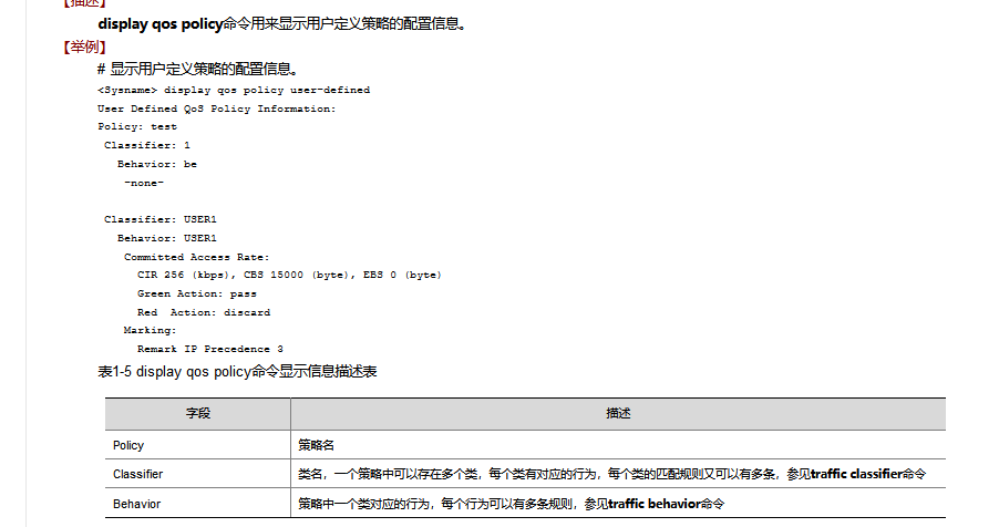 如下图为qos配置及调用,如何查看rate-limit这个流分类是否有命中,命中报文数量统计?