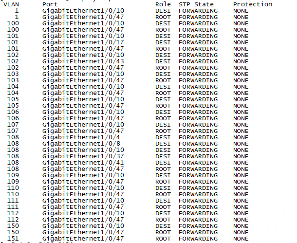 前輩們可以幫忙看看爲什麽會有這麽多的根端口,爲什麽沒有VLAN116的STP信息!謝謝了