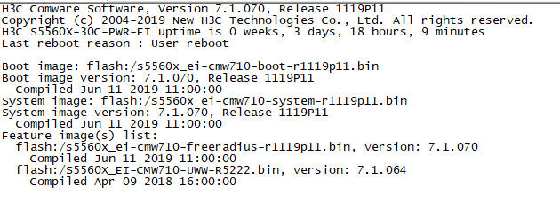 1、<H3C>install activate feature flash:/S5560-CMW710-UWW-R5204.bin slot 1 //安装特征包