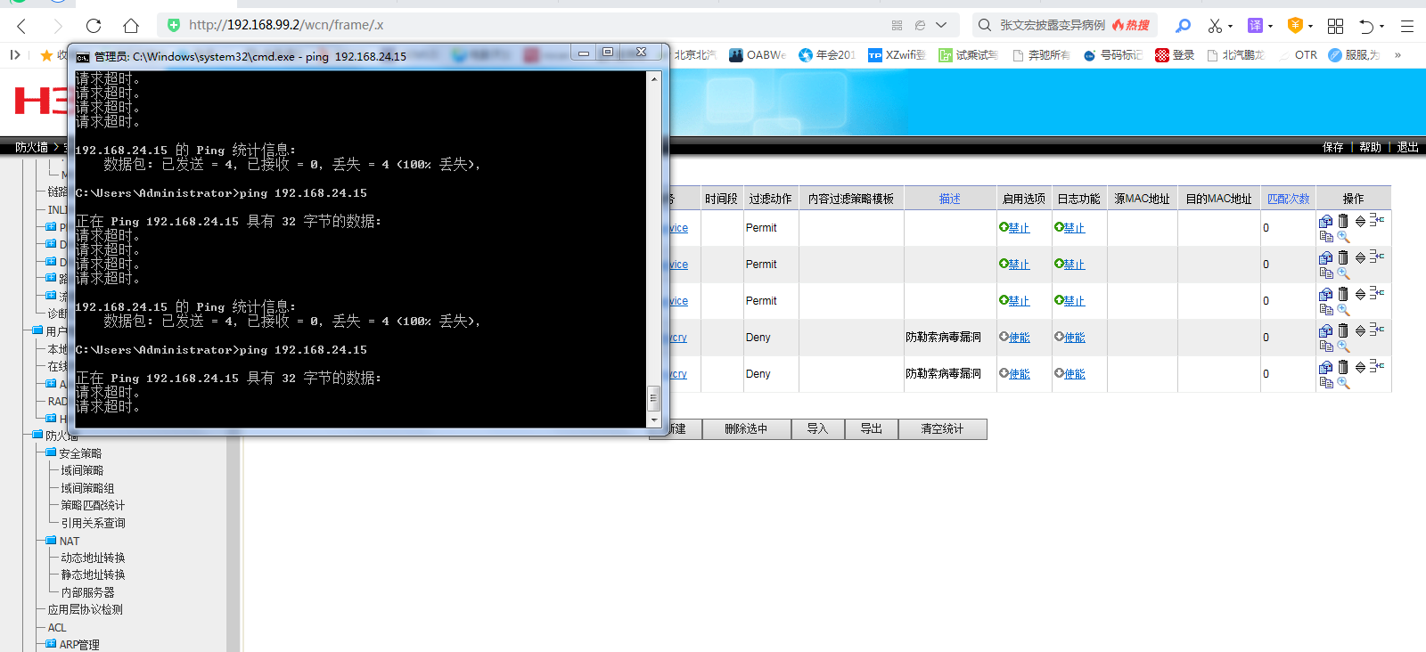 请问一下,SecPath F100-M-G 这个型号的防火墙里面,我看到静态路由里有24网段(24.14)的地址,我在16网段可以访问,但是我新建一个24.15,就没有办法PING通,也没有办法访问就是只有我原来配置的14才能使用,因为这个不是我配置的,对华3也不是特别了解。实在是不知道从哪里入手