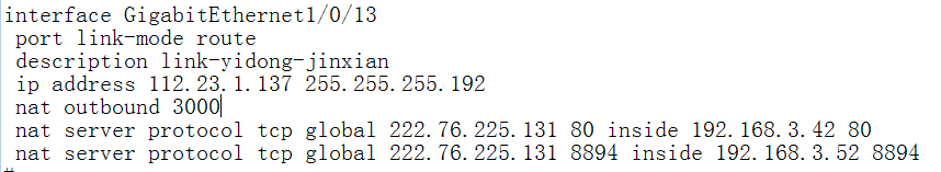 这个配置是不是有问题的,因为这个防火墙上配置的112.23.1.137,但是映射的地址确是222.76.225.131,去掉应该是没关系的吧!