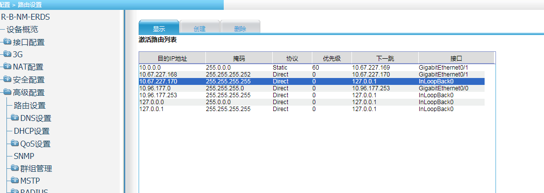 表中反馈的是互联地址,由于没有目的网段,因此可尝试使用默认路由指向看是否能互通,参考配置如下: