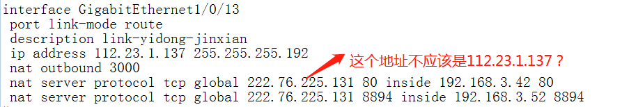 一般的nat将内部服务器发布出去应该是本接口的外网地址,可是配置中我看到的是另外的一个外网地址,这是什么原理啊?