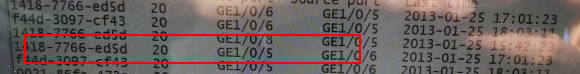 主要检查下CF43和ED5D这两个后缀的MAC地址所接入的端口及端口下是否有环路,看到有多个MAC的漂移记录。