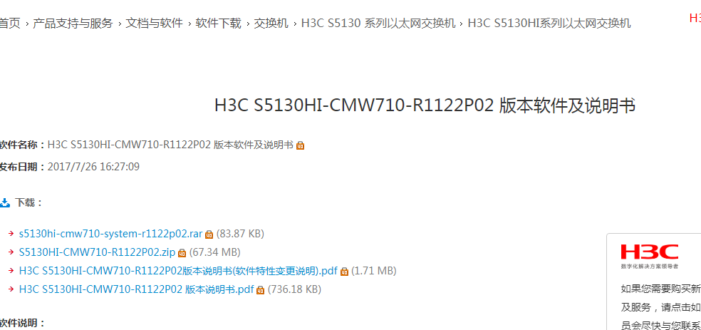 S5130S-52S-HI旧版本 7.1.045 Release 1122P02的下载链接在哪,官网软件下载版本是没有看得