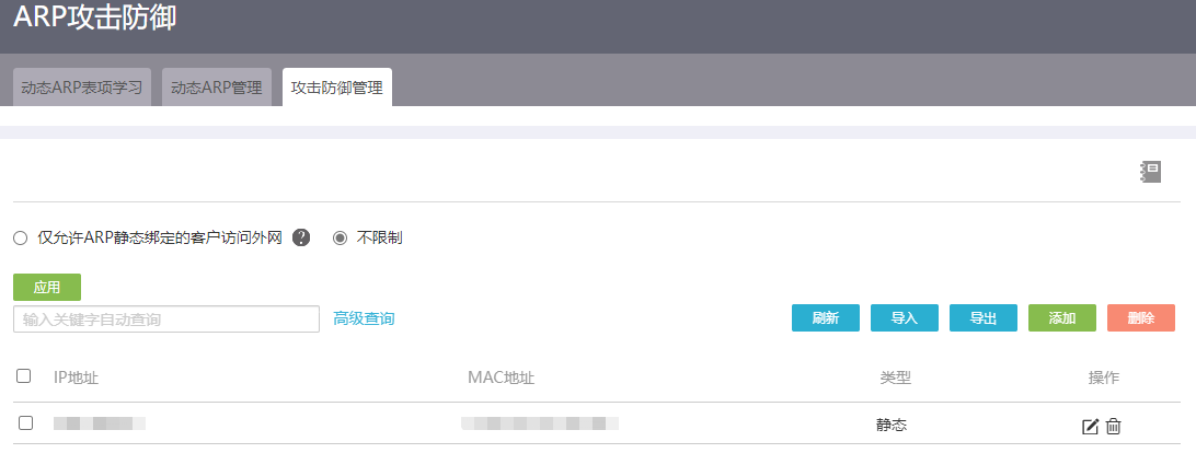 也可在系统模式下使用动态绑定表项的方式进行绑定,命令如下: