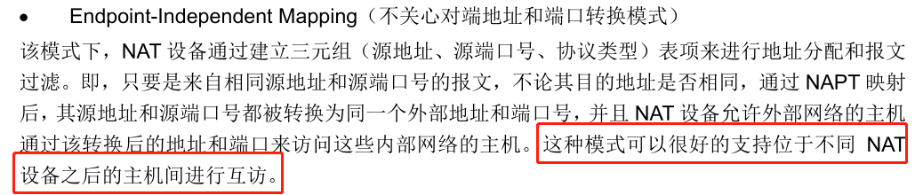 配置手册里面的这种模式解释为可以支持位于不同NAT设备之后的主机进行访问,但是这是属于动态NAT范畴之内的,既然是动态nat,怎么可以允许外部网络主机通过该转换访问内部网络主机呢?