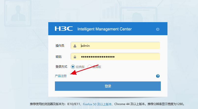 在登陆界面的“产品注册”这里收集: