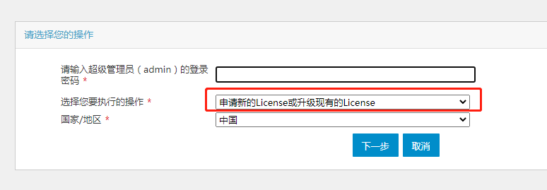 选择“申请新的License或升级现有的license”