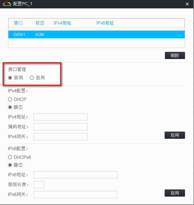 主机需要点击启动,并且接口管理也要点击启用才可以