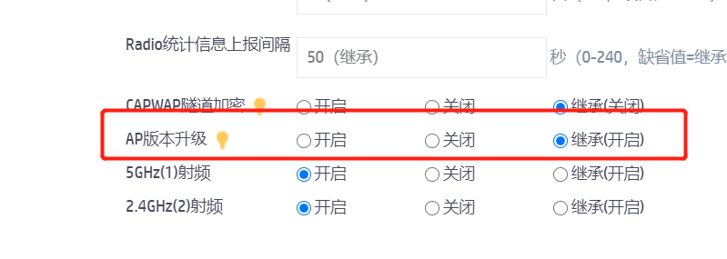 添加AP时候,AP版本升级是需要开启?继承(开启)是什么意思