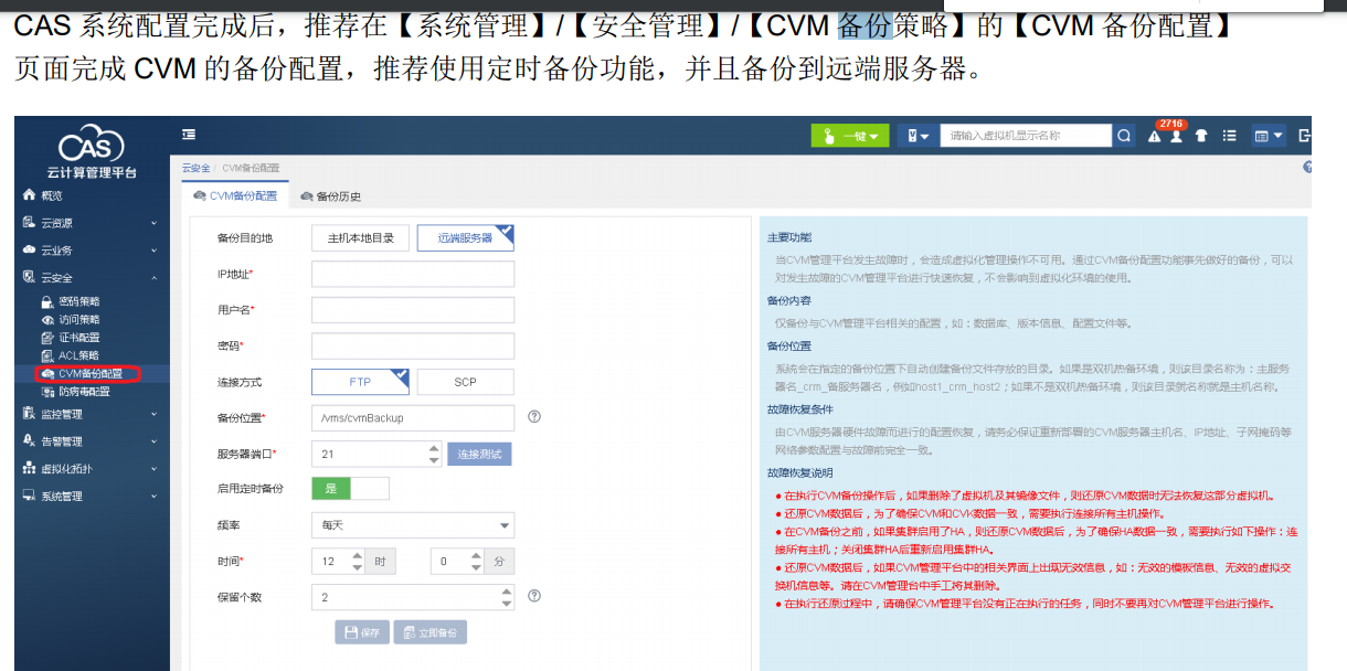 仔细看下这个备份路径要求。远端服务器备份,本地是以客户端的形式去配置,备份位置是指定cas的备份位置,不是你服务器的备份位置