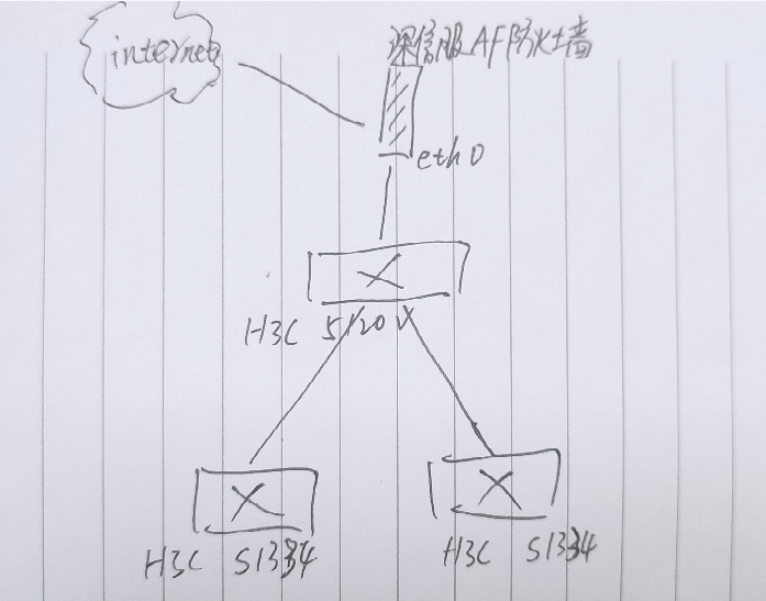 您好,可以考虑下大概思路:监控,服务器,PC,wifi分别使用不同的VLAN,网关下挪到5120,5120和深信服跑三层互联和路由转发。