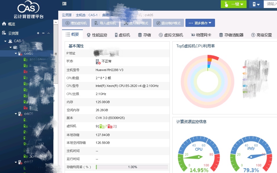 登录cas平台发现所有物理服务器状态显示不正常,无法创建虚机,求助!