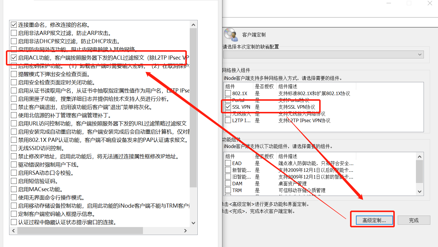 下发acl的前提是客户端定制的时候勾选了acl功能才可以