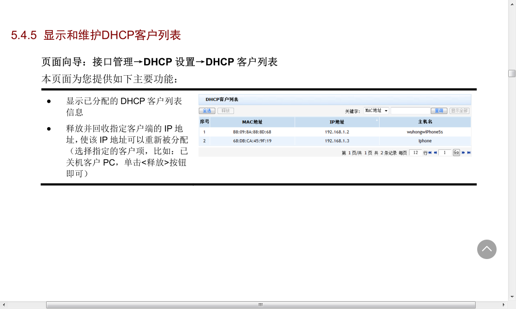 页面向导:接口管理→DHCP设置→DHCP客户列表