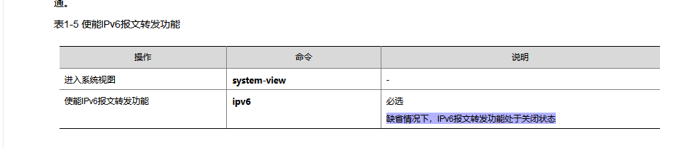 缺省情况下,IPv6报文转发功能处于关闭状态