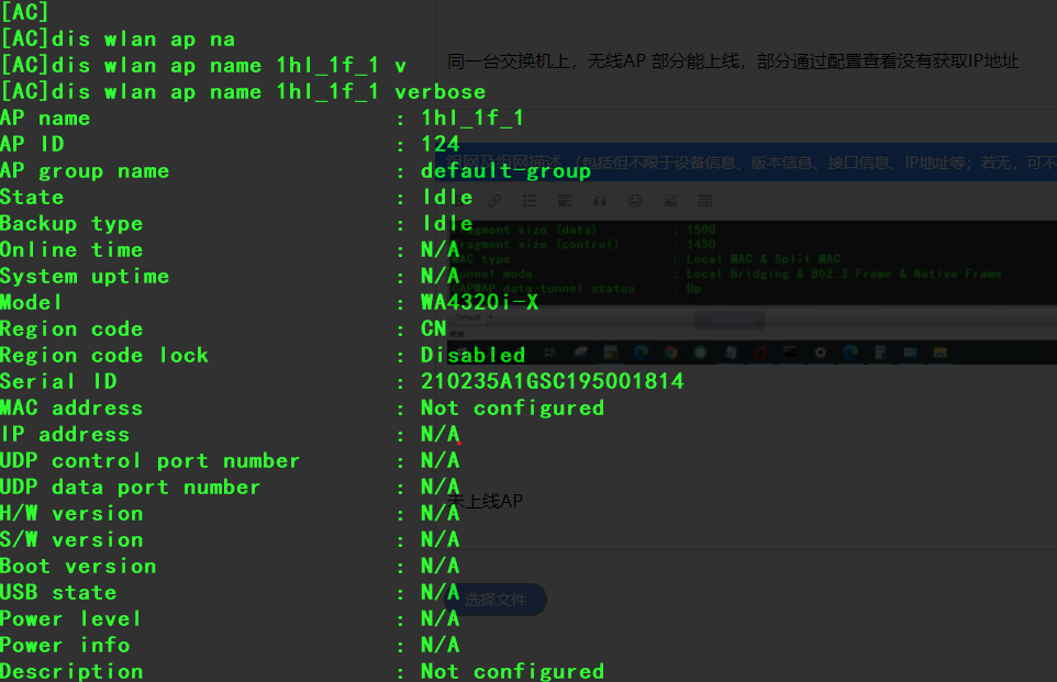 同一台交换机上,无线AP 部分能上线,部分通过配置查看没有获取IP地址,什么原因会导致这个问题