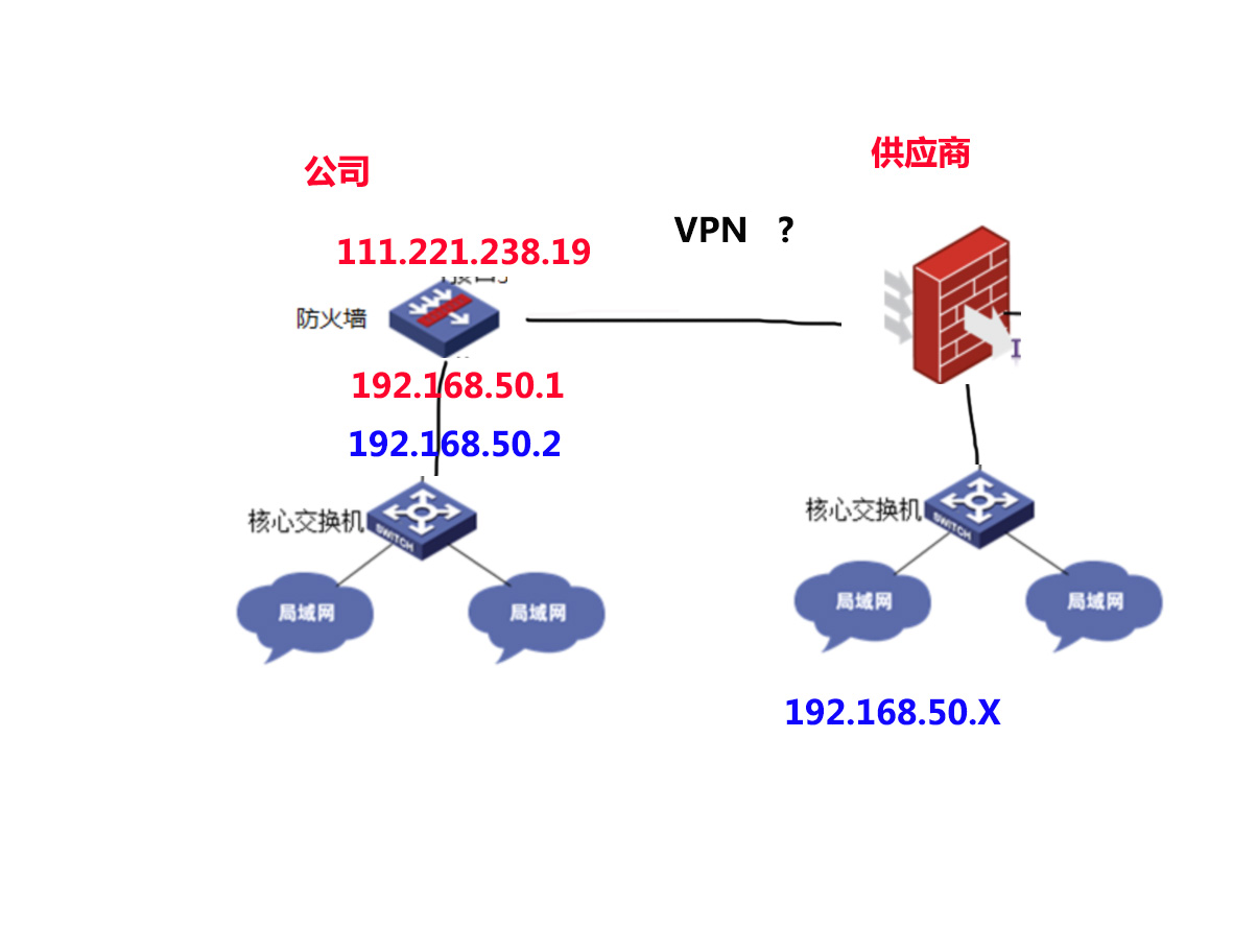 大家好: 我之前在供应商那里看到技术好像在交换机上进行连接公司的防火墙,然后把供应商的那台交换机获取到公司这边的内部地址:192.168.50.X ,应该是用了VPN设置吗?这个如何实现的?(公司那里是公网固定IP,前提他是有防火墙里面的账号)