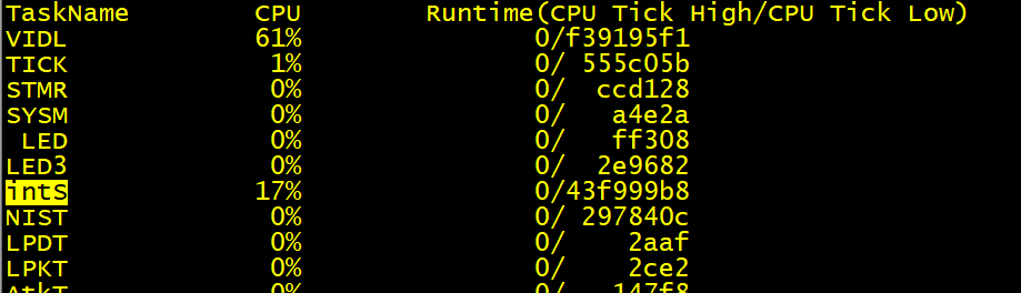 可以dis cpu-usage看下具体的使用率是多少。
