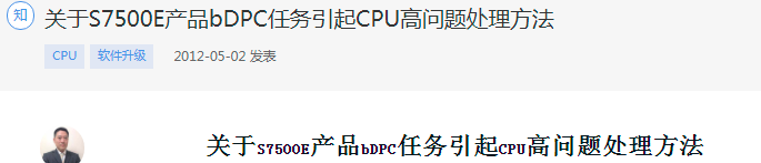 BDPC任务是用来处理设备在运行过程中由于芯片异常而产生的错误告警信息。S7500E设备在长时间的运行过程中,会小概率出现某些芯片表项错误,导致持续不断的产生芯片级错误告警信息,而BDPC任务要对该错误告警信息进行记录,导致BDPC任务持续占用较高的CPU,进而导致该SLOT的CPU使用率过高(超过60%)。错误的表项一般是当前设备不使用的表项,所以一般不影响业务的运行。 解决方案是升级版本。