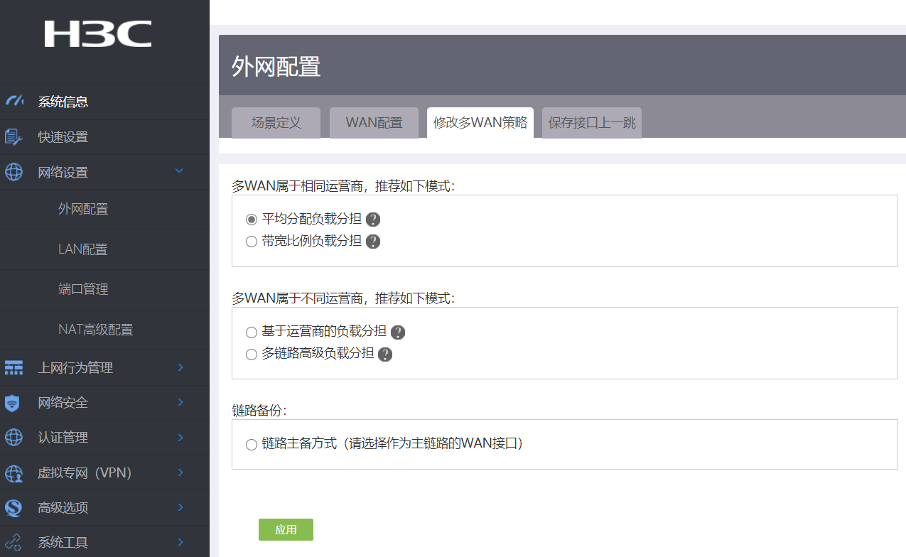 3、如果有需求实现特定网段走特定出口,可配置策略路由来实现。