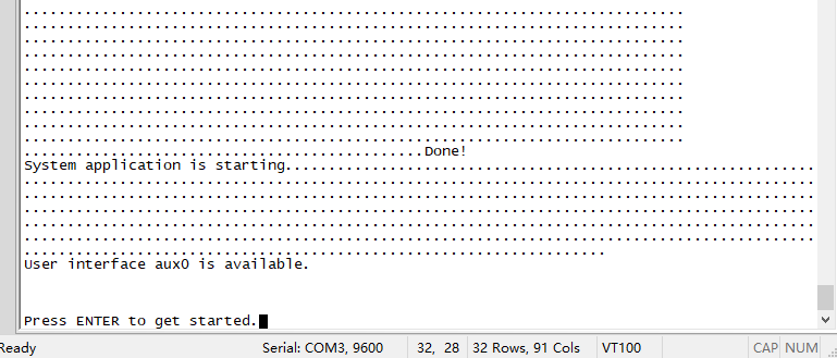 Press ENTER to get started 说明已经进入命令行界面 按回车键没反应的话 建议更换console线和笔记本电脑测试下