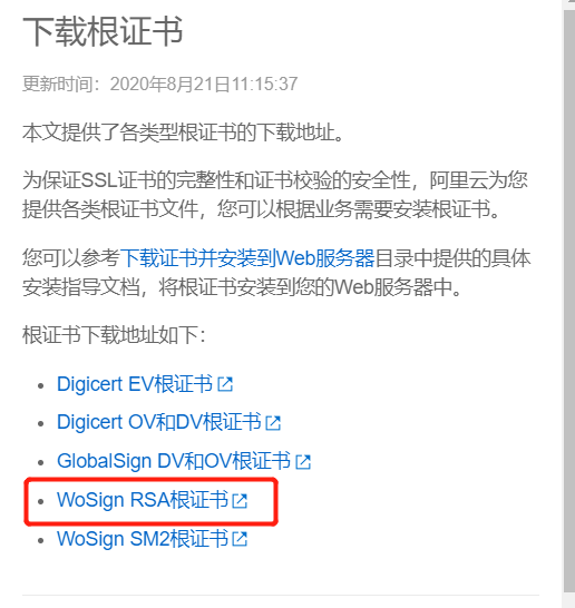 其中从阿里云上下载的根证书格式是.crt格式,本地证书是pfx格式。