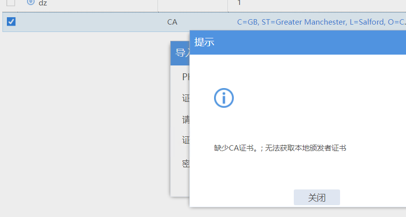 标红框的本地证书和根证书是400确认下载的,但是导入CA证书正常,导入本地证书提示如下