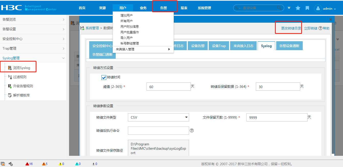 imc收到了纳关交换机的syslog日志,请问如何转储到网管服务器的指定目录里。网管服务器为WindowsServer2008 R2 enterprise。