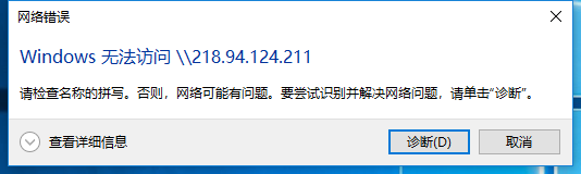 为了排除服务器问题,用另一台服务器也建立了共享文件夹,是同样的情况,能PING通但是无法访问,同样在内网用公网地址(5.5.5.5)可以进入共享文件夹,基本确定不是服务器设置问题。外网连接公网地址(5.5.5.5)报错如图
