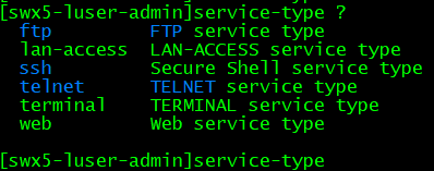 service-type后面只有 ftp 、lan-access、ssh、telnet、terminal 、web ;authorization-attribute user-role后面只有 guest、guest-manager、security-audit