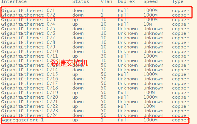 一台华三7506E交换机与锐捷S5750交换机各两个千兆端口做聚合链路,在华三上查看两端口为UP状态,聚合链路为2G;在锐捷交换机上查看两端口为DOWN状态,聚合显示为1G, 什么原因?