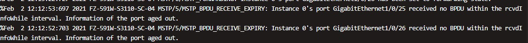 检查下这25和26口是否开了边缘端口,一般连接的终端的端口可以开启边缘端口,但是如果不是连着终端,收到BPDU报文后,这个端口会关闭。
