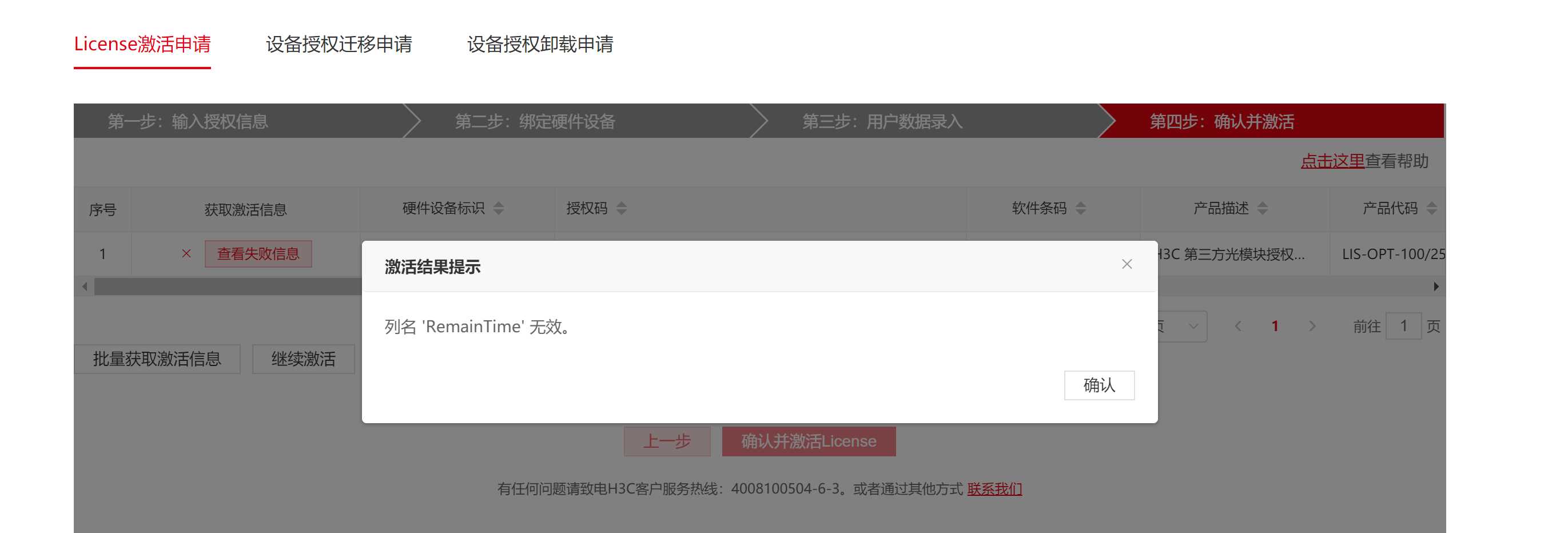 最近官网在更新license功能模块,要是注册失败,就只能联系售后,让他们在后台看一下。